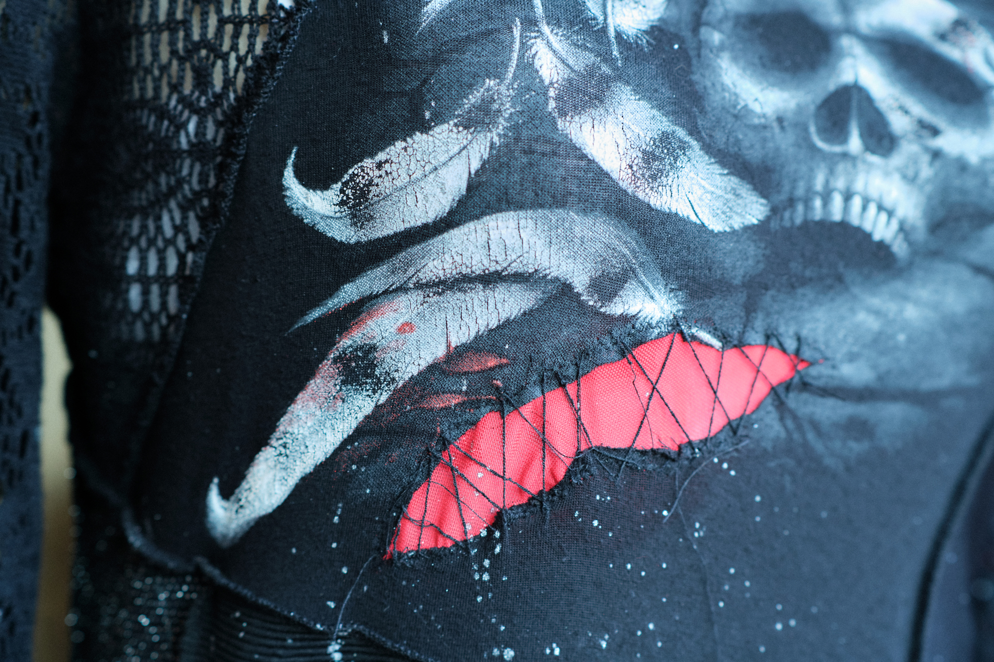 Once those words surfaced, everything snapped into focus. The entire piece changed direction in an instant. The skull motif and the feathers I had added almost absentmindedly suddenly felt as though they had been waiting for this moment all along. They stopped being decorative elements and became symbols. Heavy ones. Necessary ones.