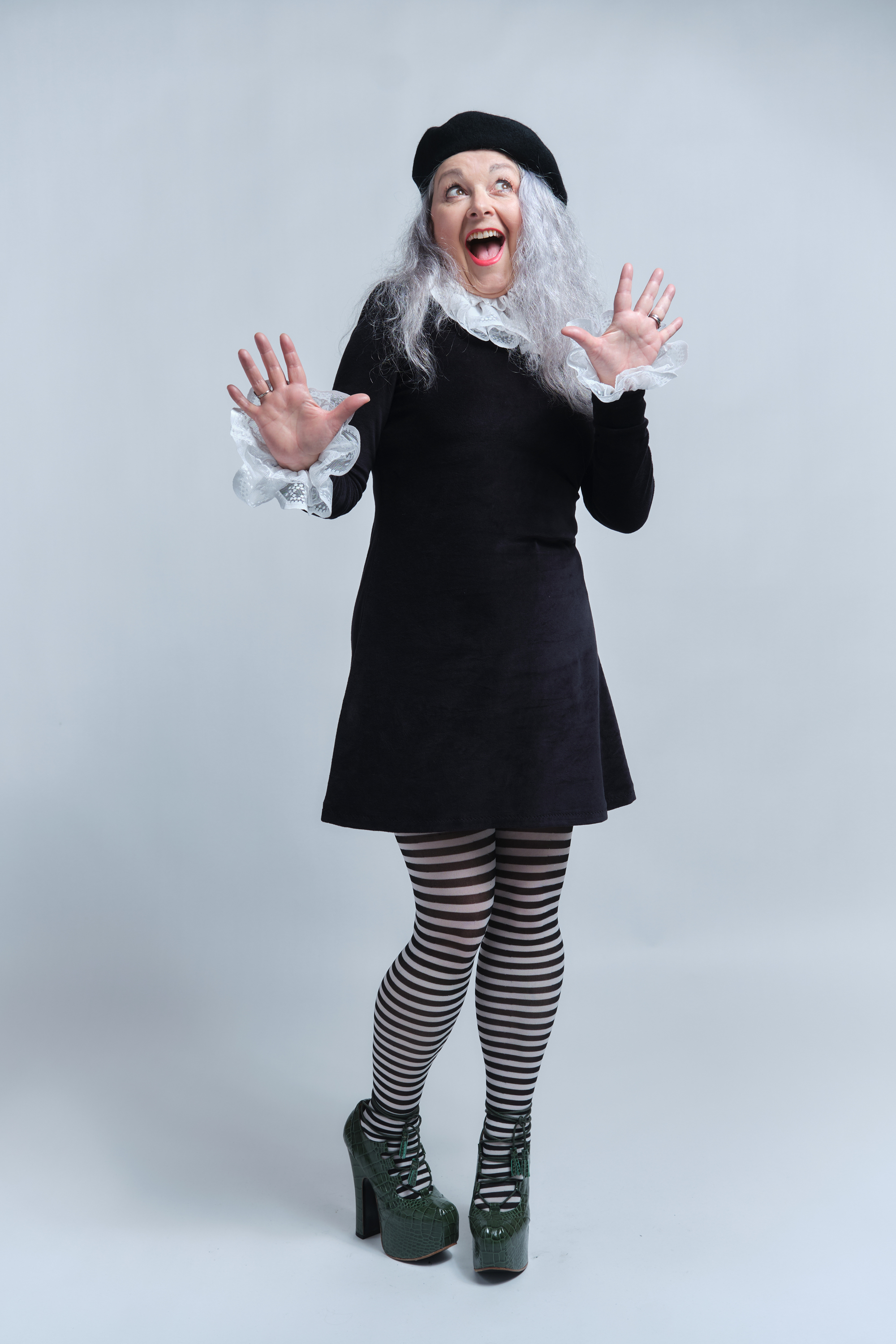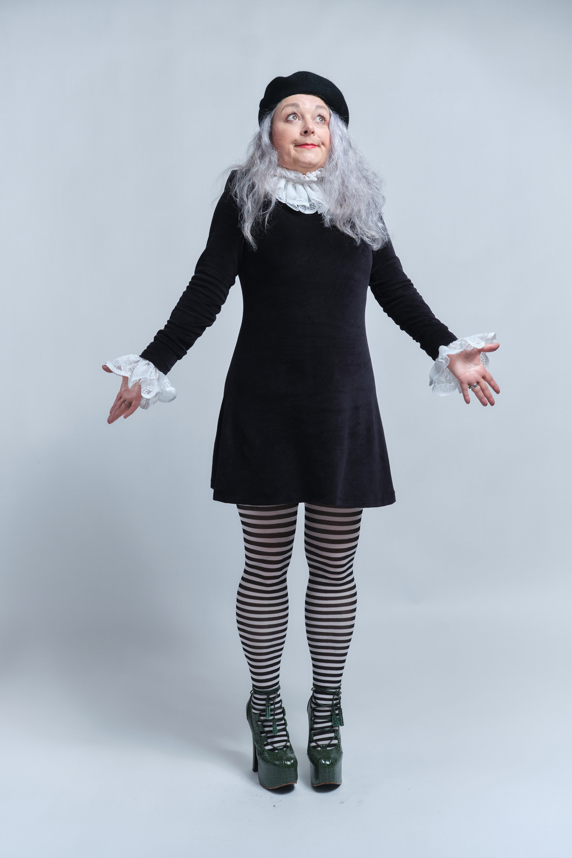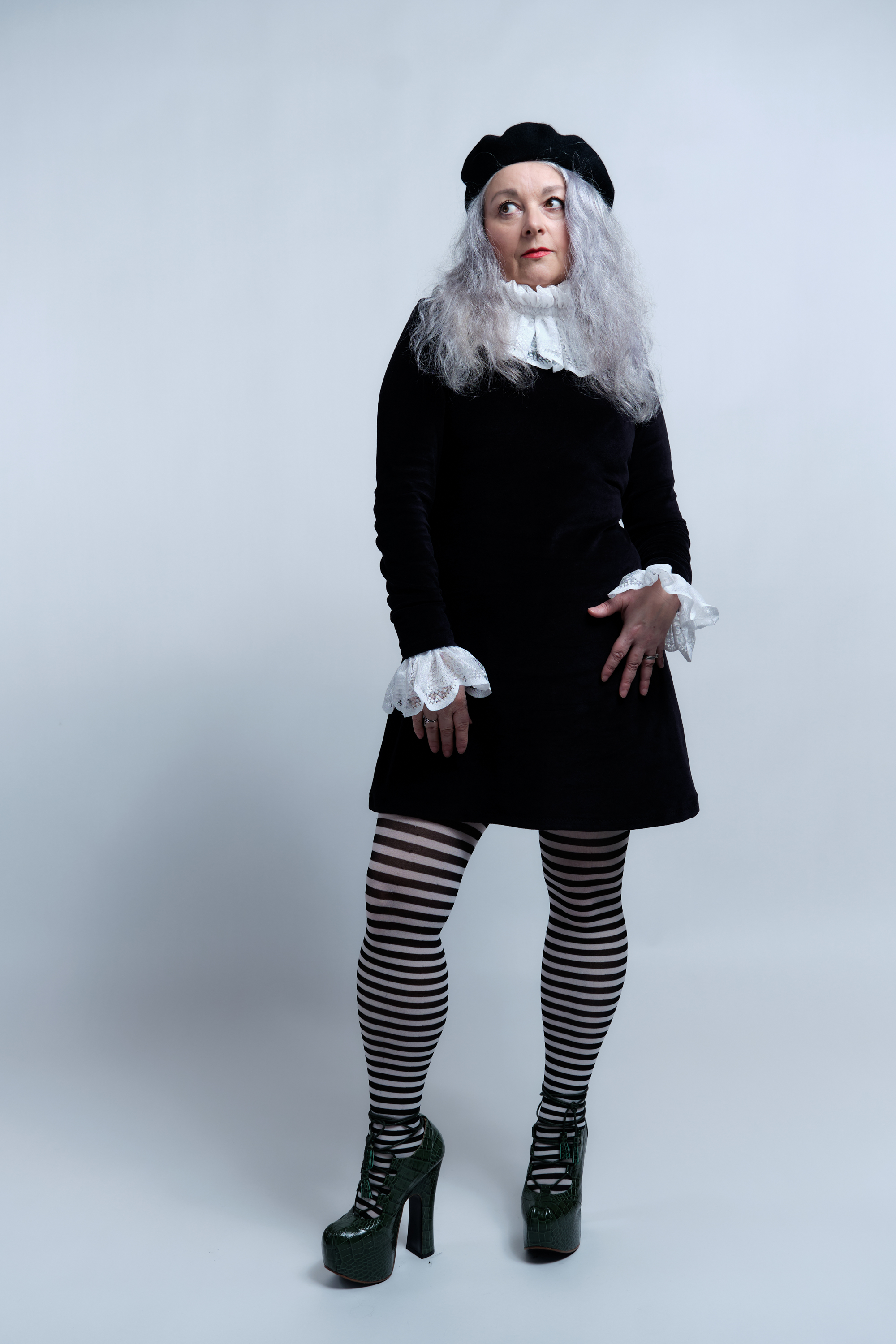 Quite what the occasion is for this particular look, I’m not entirely certain. Somewhere between a Marcel Marceau homage and a Wednesday Addams wannabe party. It’s dramatic, slightly ridiculous, but deeply satisfying. Sorry Claudia. I tried! The beauty of a very plain base dress is that it becomes a blank canvas for this sort of nonsense, and I love garments that can shapeshift like that.